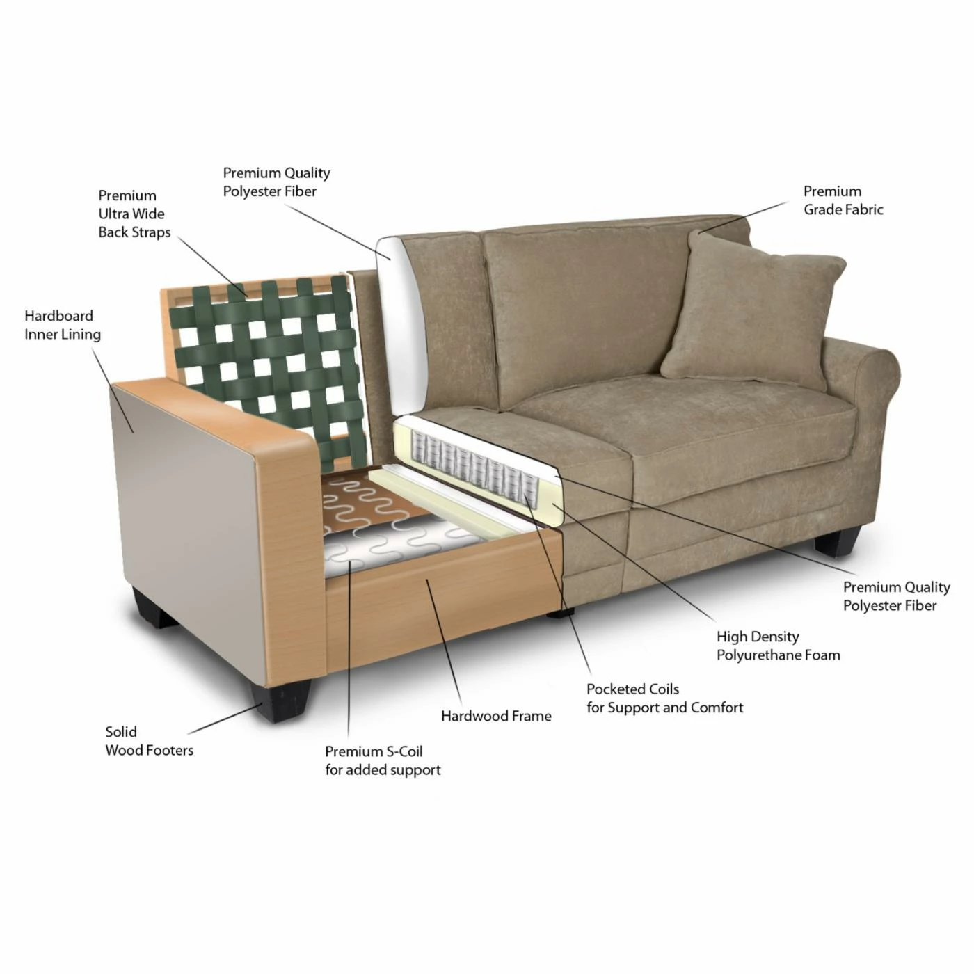 - Premium non-woven poly-fiber cushions