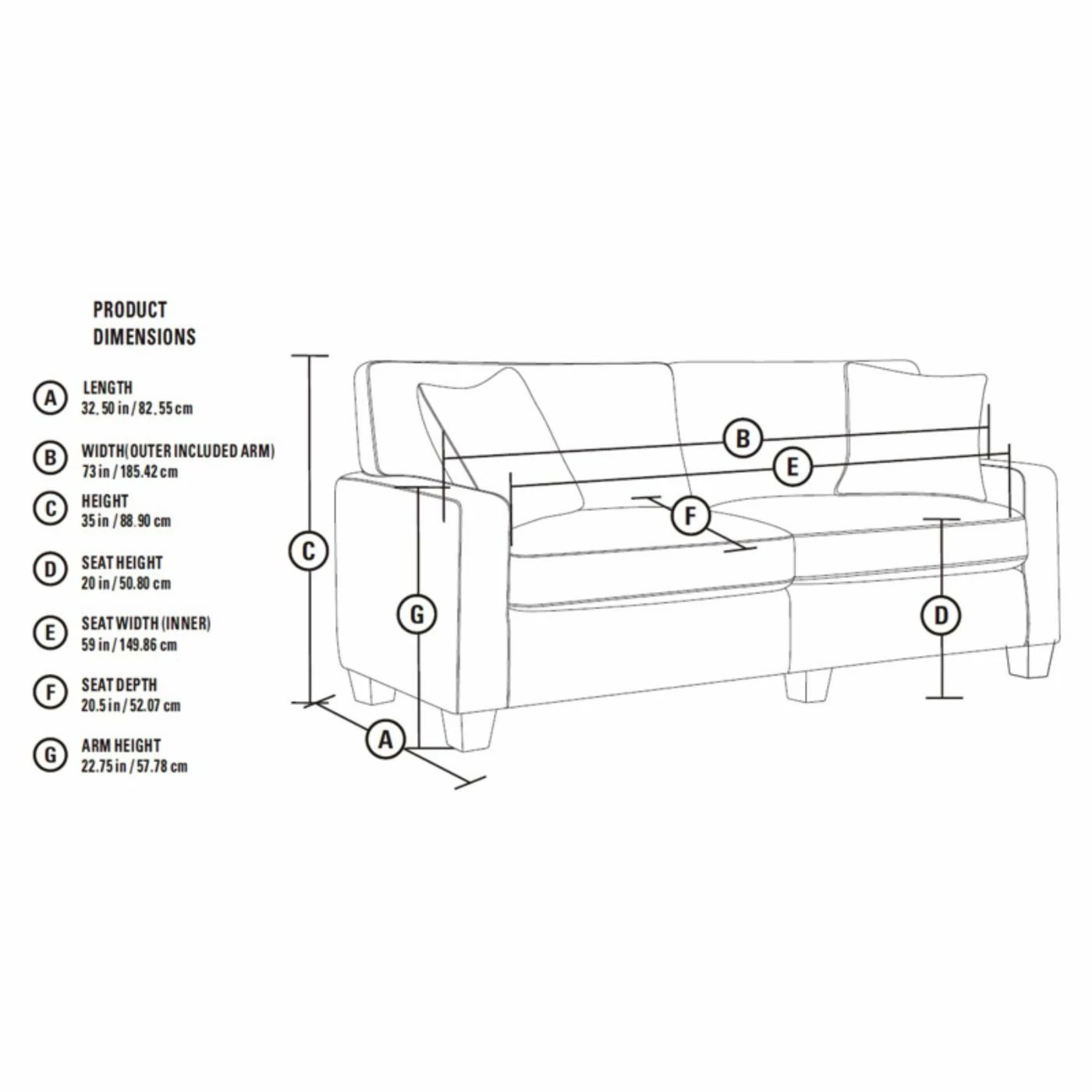 - Dimensions: 73W x 32.5D x 35H in.
