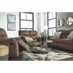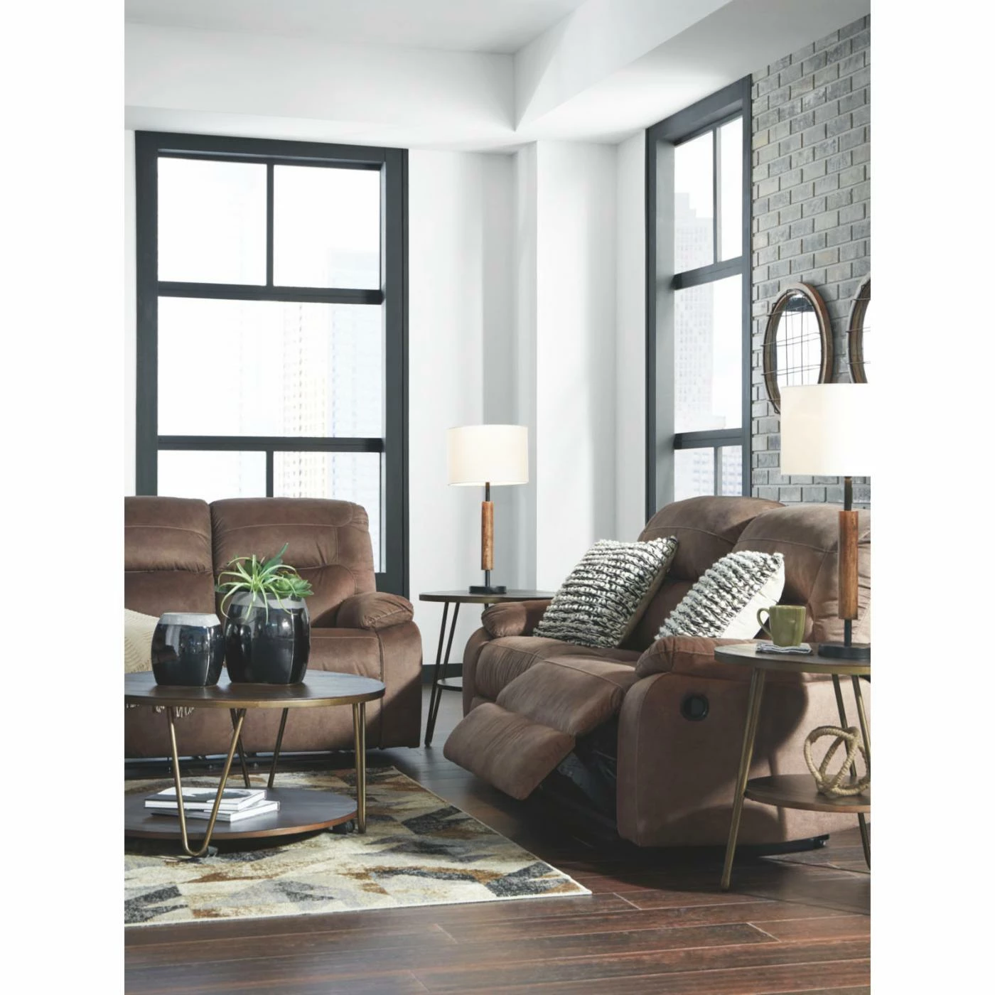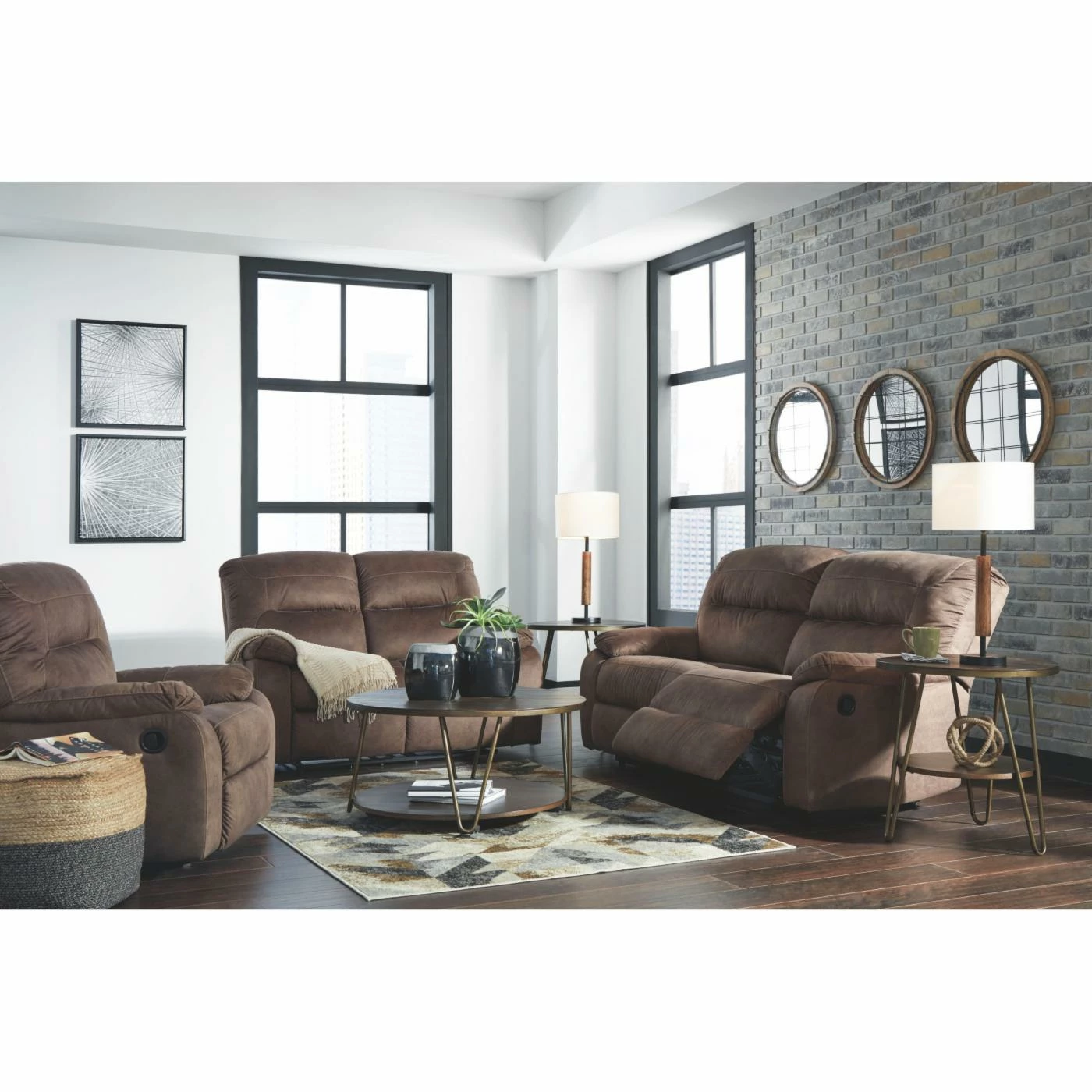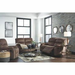The Signature Design by Ashley Bolzano 2 Seat Reclining Sofa is a little old-fashioned, and that’s a good thing. This reclining sofa is built with the desire to provide you with the comfort you need, which is why it’s plumply padded with cushioning all over. This sofa features Signature Design by Ashley’s characteristic durability and attention to comfort. They start off with corner-blocked frames and metal-reinforced seats, which stand up to the stresses of everyday life. Next are the high-resiliency foam cushions wrapped in poly fiber. Together, these features offer the comfort and longevity you desire from your living room furniture.