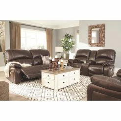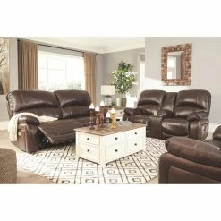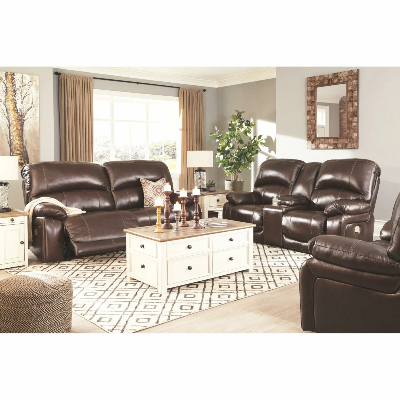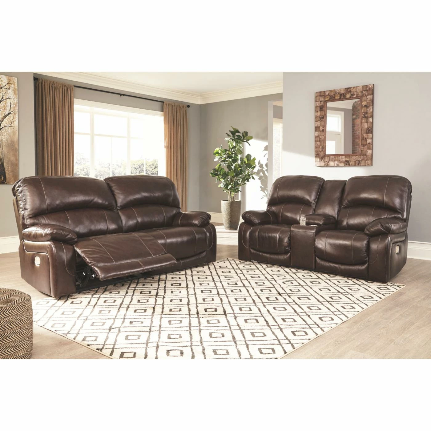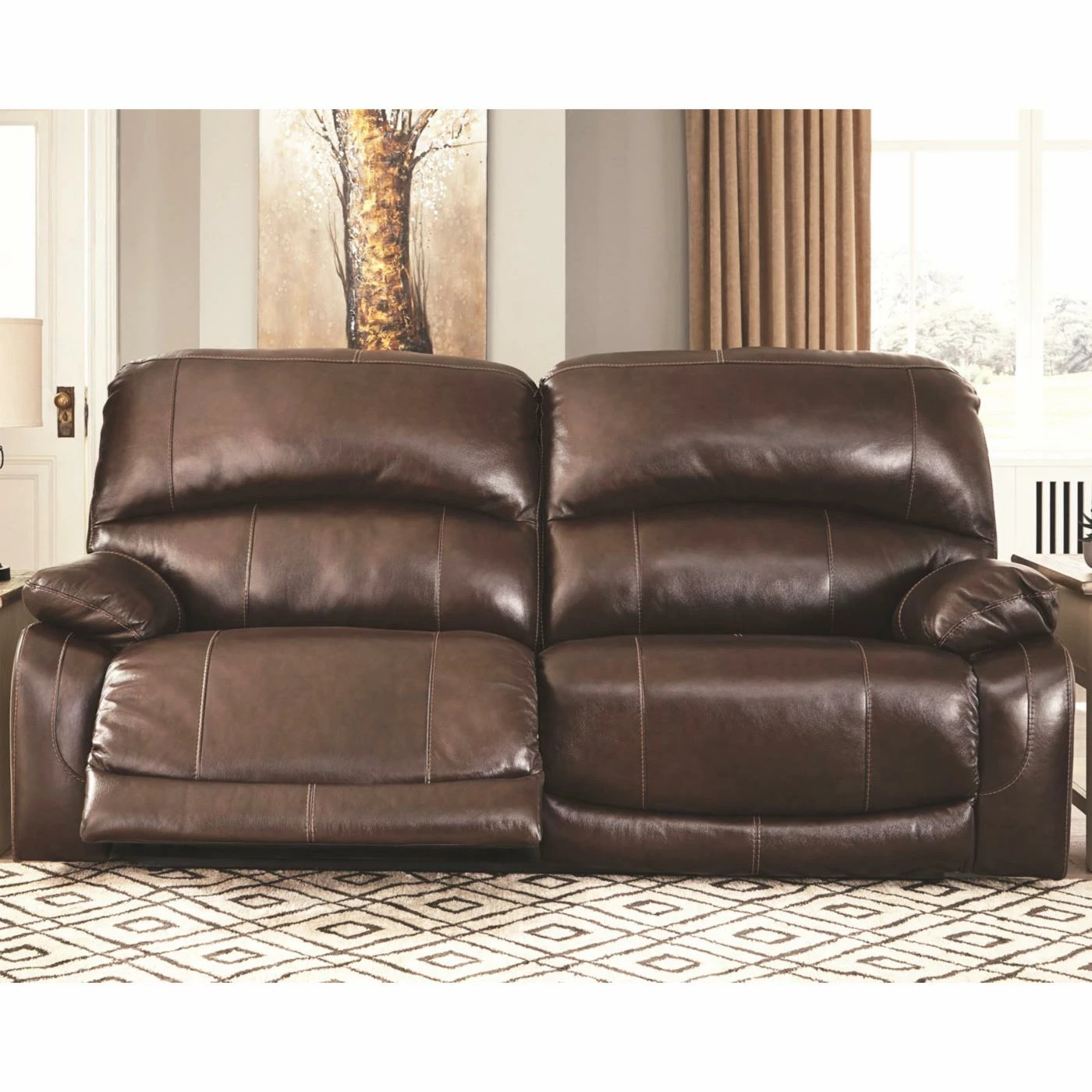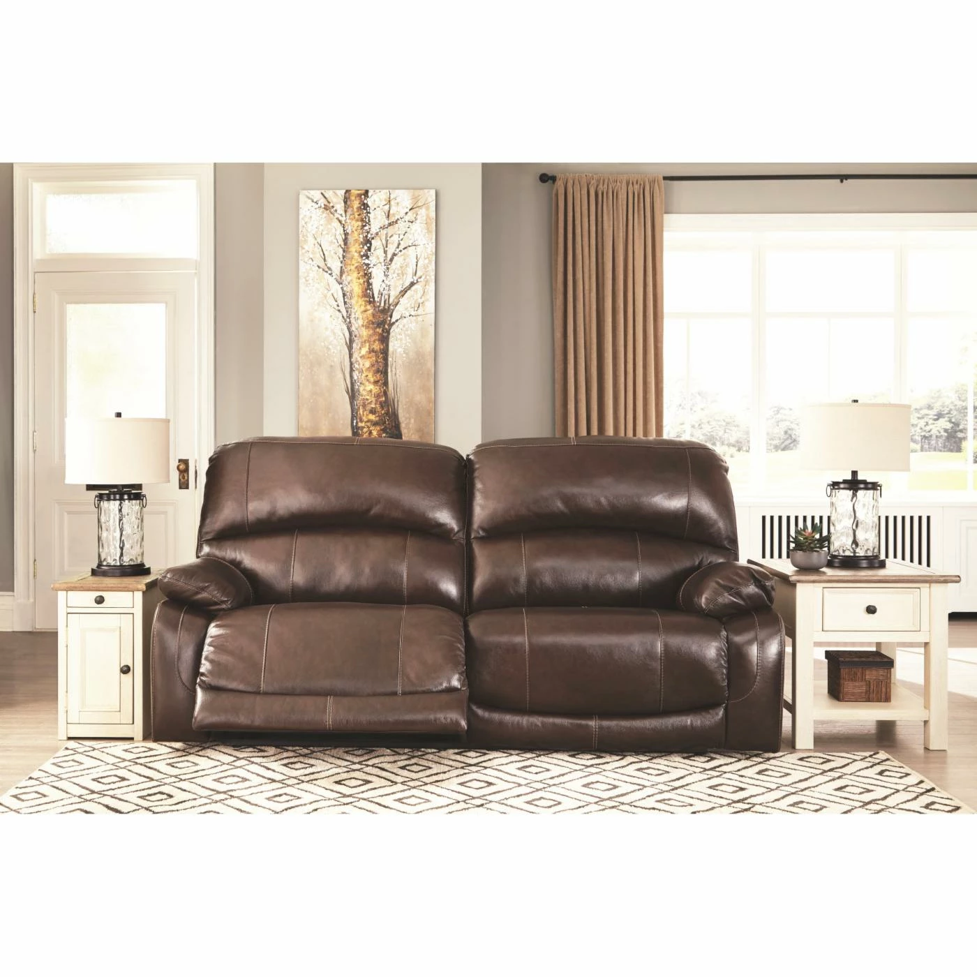 The Signature Design by Ashley Hallstrung 2 Seat Power Reclining Sofa has the width of a traditional sofa, but it’s designed to seat only two – giving you and your guest extra space to relax. This sofa features Signature Design by Ashley’s characteristic durability and attention to comfort. The piece starts off with corner-blocked frames and metal-reinforced seats, which stand up to the stresses of everyday life. Next are the high-resiliency foam cushions wrapped in poly fiber. Together, these features offer the comfort and longevity you desire from your living room furniture.
