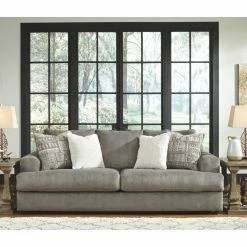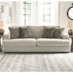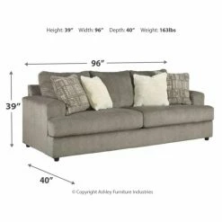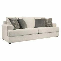 Deep, plush cushions bring an inviting look to the design of the Signature Design by Ashley Soletren Sofa. This long sofa features soft polyester fabric over a strong corner-block frame. Four accent pillows complete the neutral, contemporary design of this sofa.