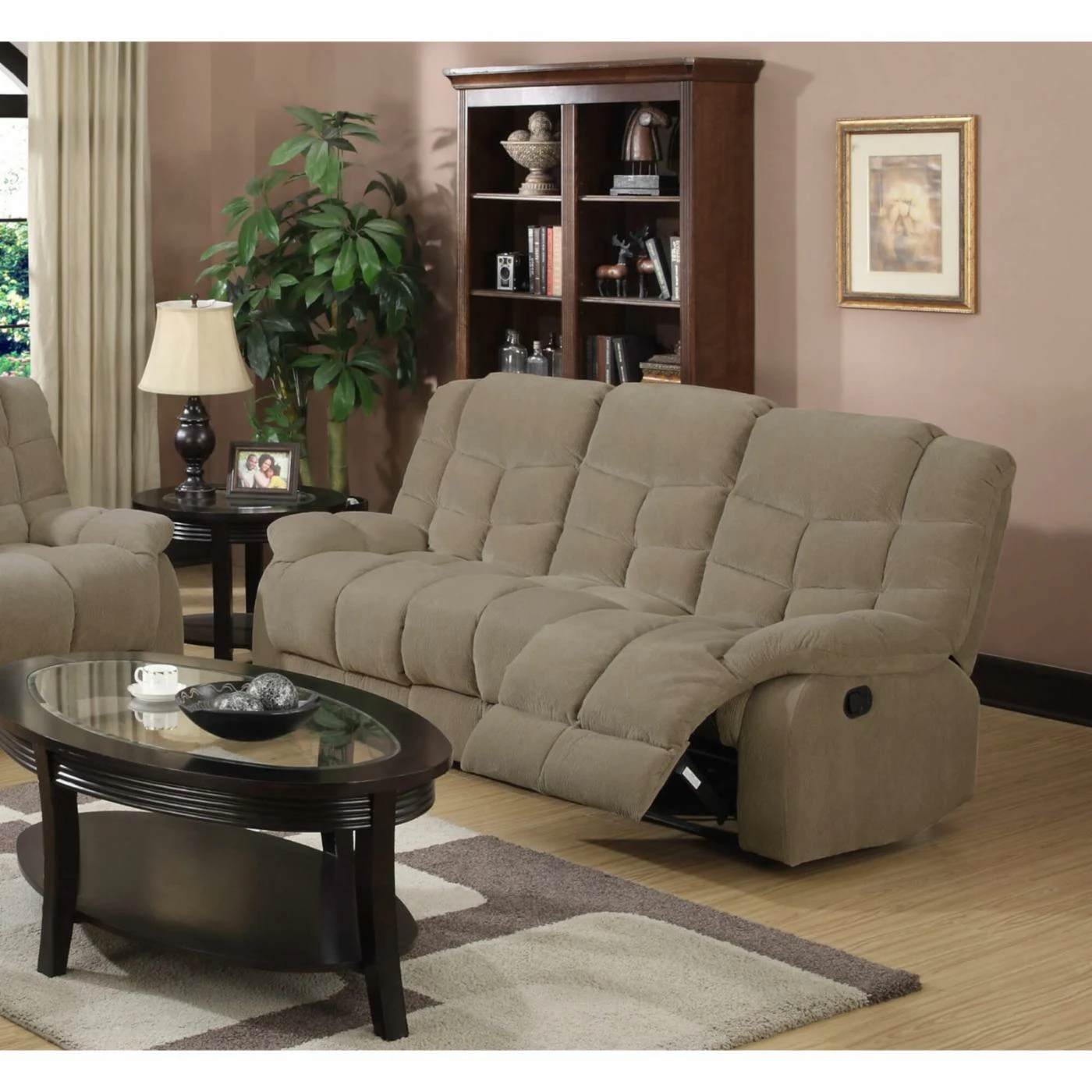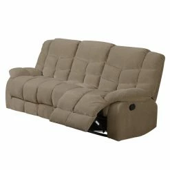 The Sunset Trading Heaven On Earth Reclining Sofa – Tan comes in a tan corduroy upholstery that lends casual charm. This handsome reclining sofa seats three comfortably and features aΒ reclining feature that maximizes comfort. It’s built on a hardwood frame with Dacron layer over pocket coil seat cushion. The seating and back have sinuous heavy-duty no sag springs. This reclining sofa has tufting and cushy pillow-top arms.