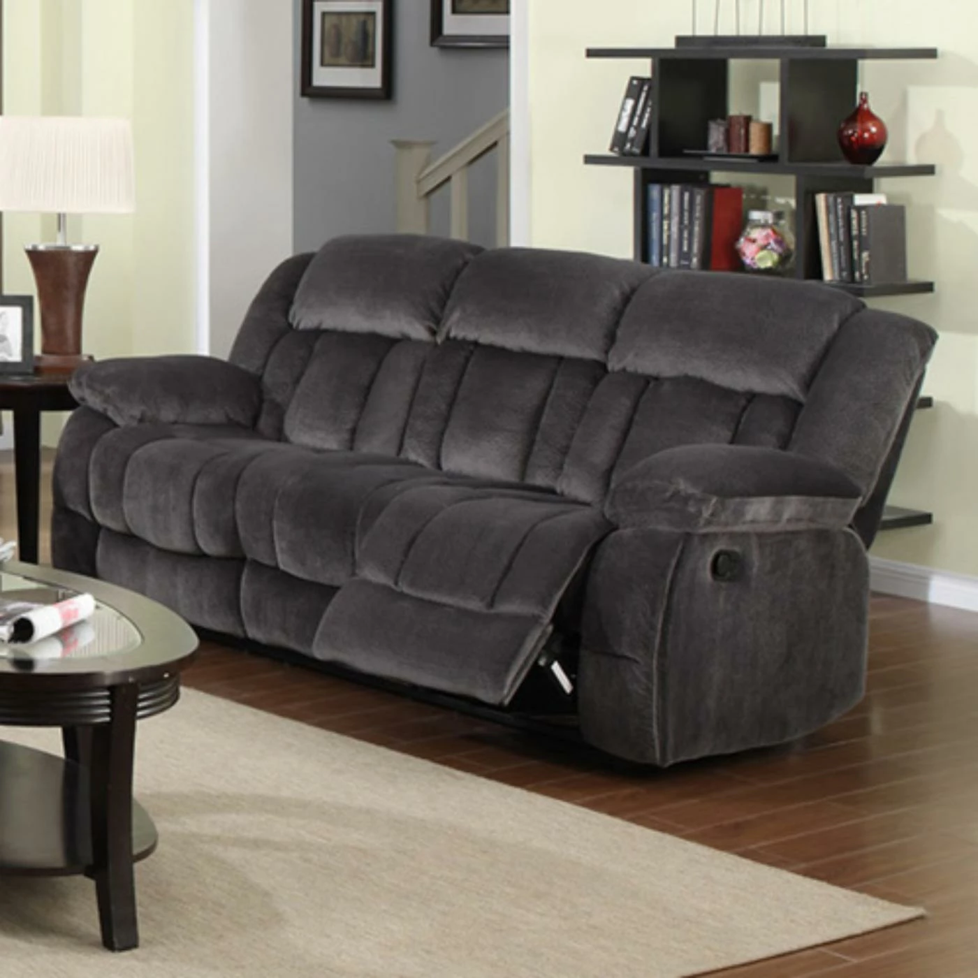 The Sunset Trading Madison Reclining Sofa – Charcoal Blue / Gray is upholstered in a stylish and sumptuous micro suede fabric. This reclining sofa seats three comfortably and both end seats have aΒ reclining mechanism. It’s built on a hardwood frame with Dacron wrapped pocket coil seating and sinuous heavy-duty no sag springs.