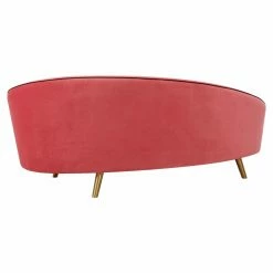 With its velvet upholstery and gold legs jutting out at jaunty angles, the TOV Furniture Cleopatra Sofa commandeers attention. Its rounded, sloping backrest is defined by piped stitching along the border. Choose your favorite color from our available selection and make the sofa yours.