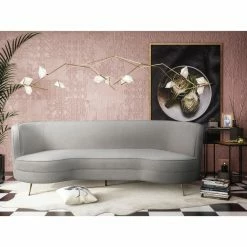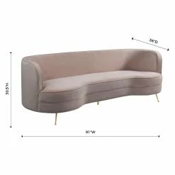 Youβll fall in love with the plush elegance of the TOV Furniture Flare Velvet Sofa. Featuring a gently curved silhouette and stainless steel legs in brushed gold, this sofa is reminiscent of Old Hollywood glamour. Luxurious upholstery comes in your choice of available fabric types and color to complement any decor (color dependent on type of fabric chosen). Handcrafted from pine wood by skilled furniture artisans, this sofa will maintain its beauty and integrity throughout the years.