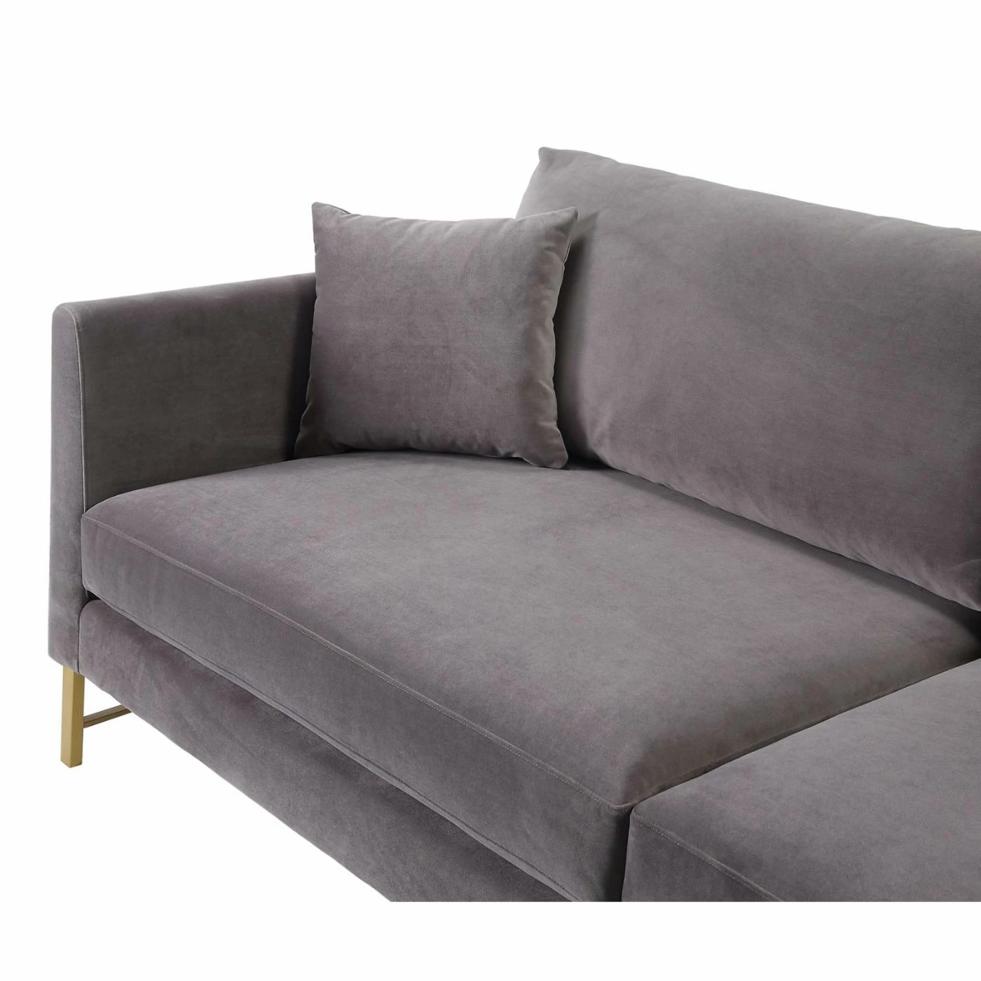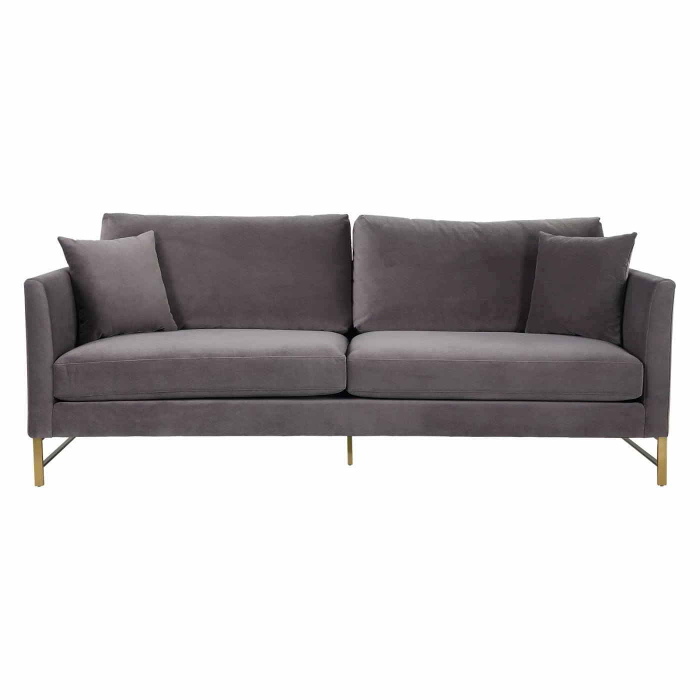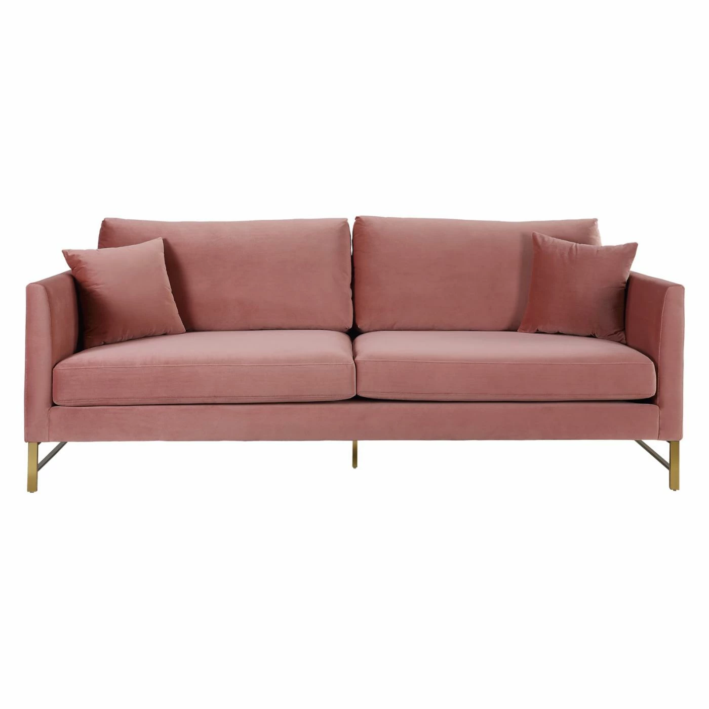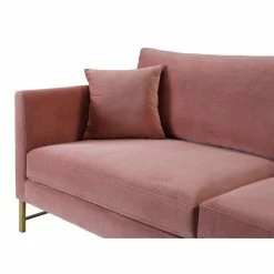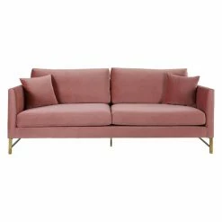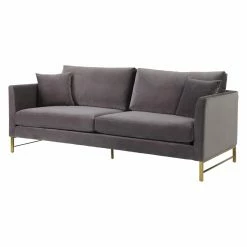 Mid-century modern design blends beautifully with glam style in the TOV Furniture Massi Velvet Sofa. Stainless steel legs in gold perfectly accent the lush, velvet upholstery which comes in your choice of available colors. Made for comfort your comfort, this sofa features silk webbing suspension and sinuous coil springs for maximum support. Handmade by skilled furniture craftsmen, the durable wood frame ensures this piece will maintain its integrity over the years. Two matching accent pillows complete the look.