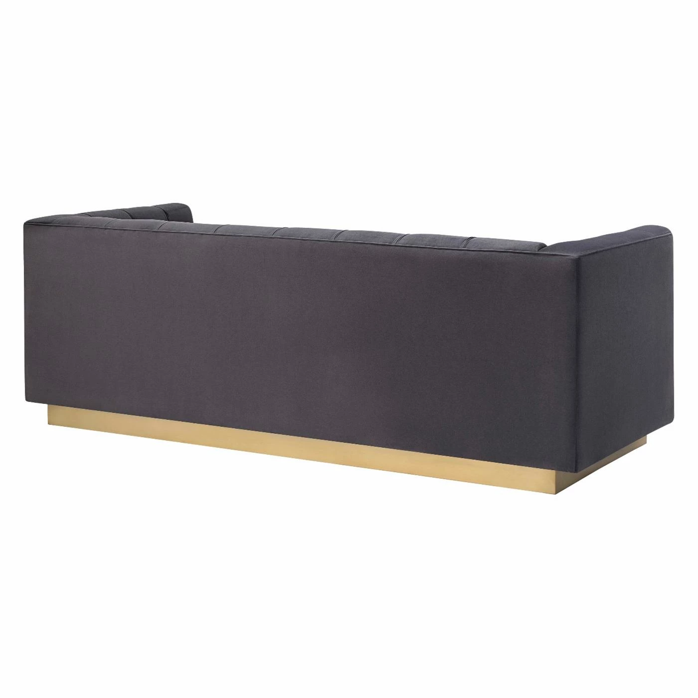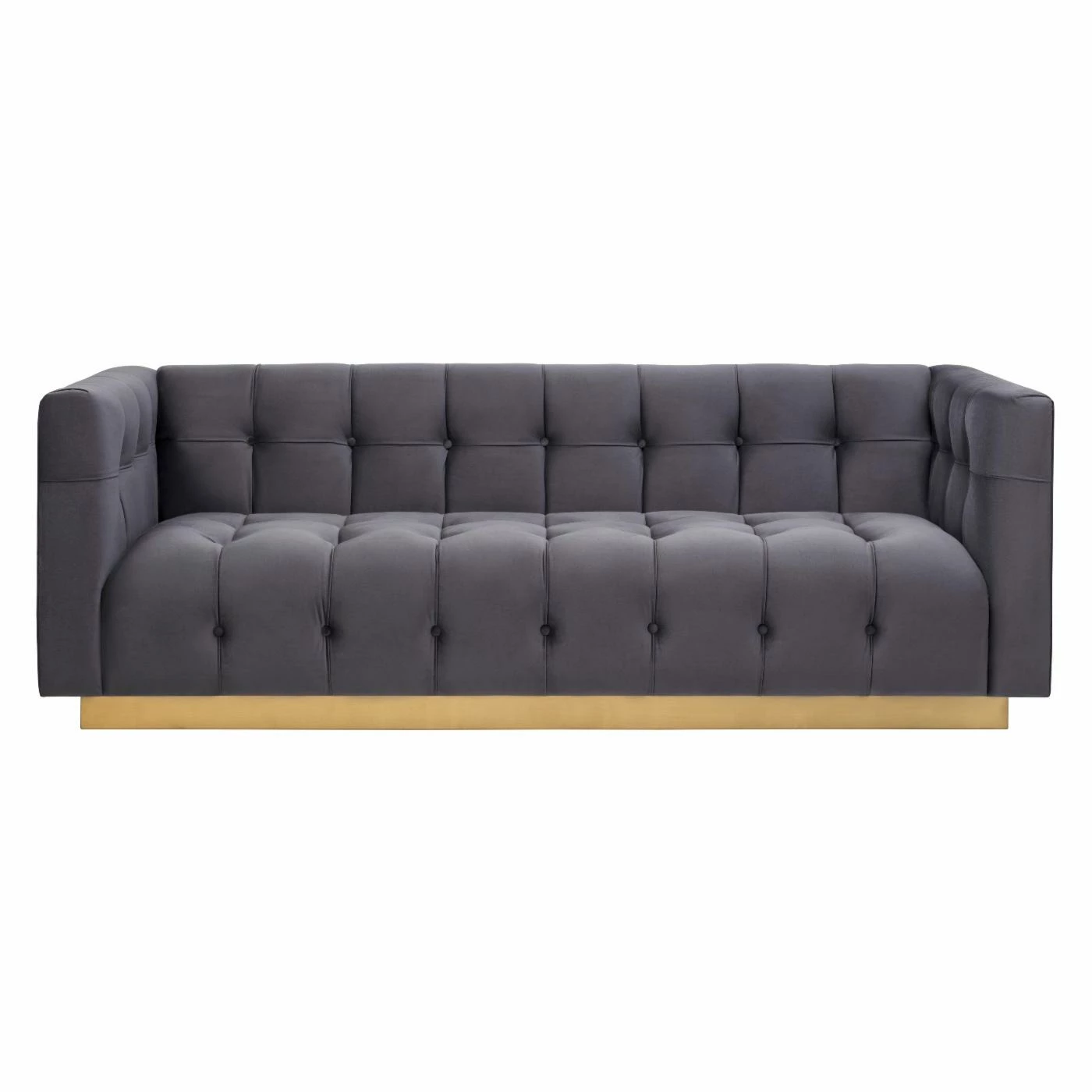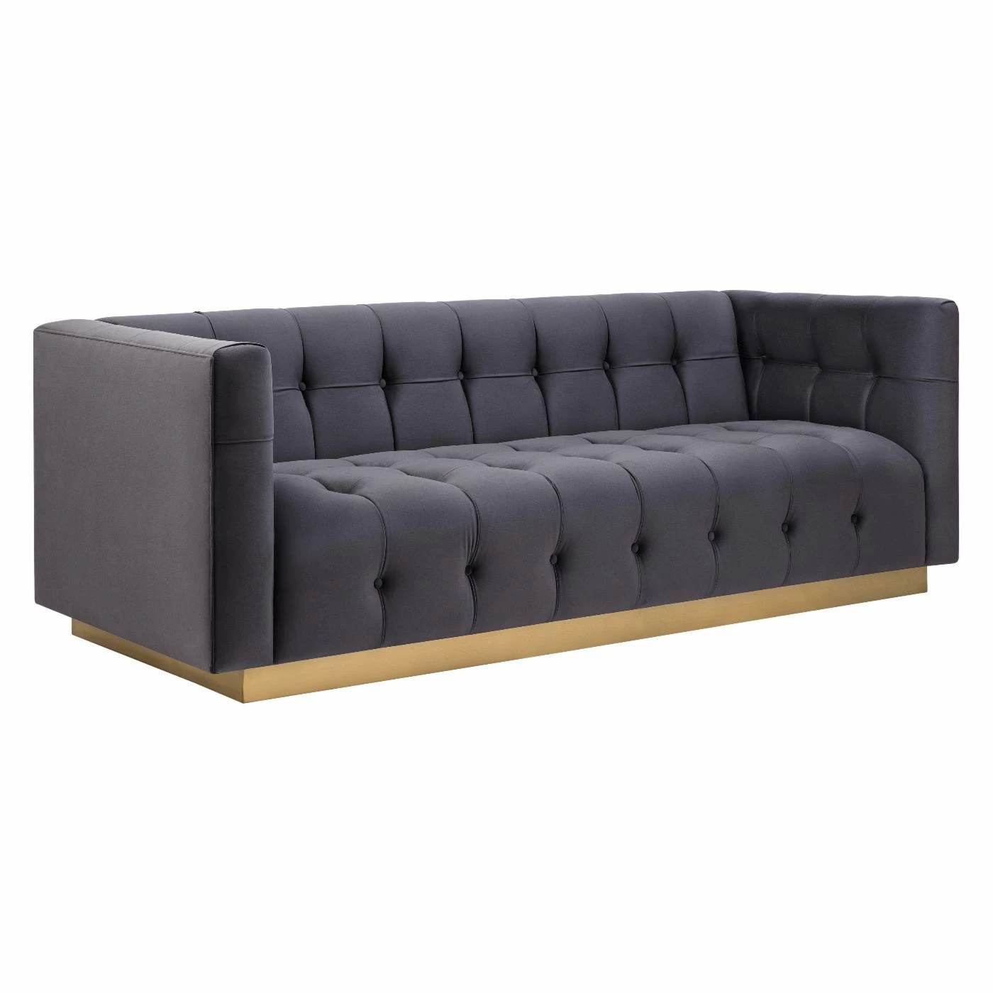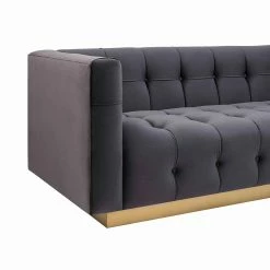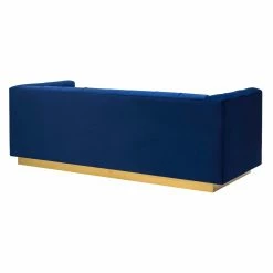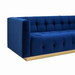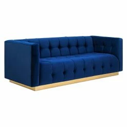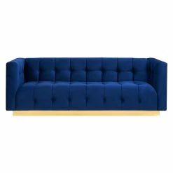 For maximum impact, add the TOV Furniture Roma Velvet Sofa to your living room and ramp up the drama. Rich velvet upholstery covers a solid wood frame. High arms are level to the back for a sense of symmetry. Tufted tuxedo-style upholstery around a solid wood frame means this sofa is anything but boring. Presented atop a wooden pedestal style base, enjoy the elegance and visual impact of this statement piece. Some assembly required.