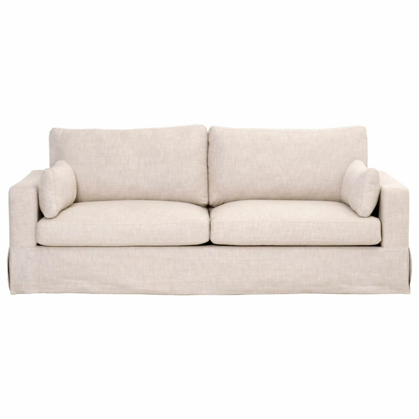 Simplicity can be the most sophisticated style of all – case in point: the Star International Maxwell Sofa. With a versatile design that’s right at home in many a palette and dΓ©cor, this sofa features French linen upholstery in a neutral bisque color. The cushions reverse for even, long-lasting wear, and two matching bolster pillows come included, too. A skirted base creates a neat, tailored silhouette.