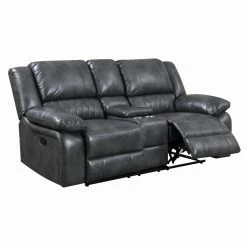 If anything is better than an ultra plush recliner, Wallace & Bay Marshall Motion Console Loveseat knows that it’s an ultra plush recliner for two. Sit down with your sweetie, beverages in place, and recline in this comfortable loveseat. Built of wood and featuring luggage-stitched faux leather, this piece is just as easy on the eyes as it is on the feet.