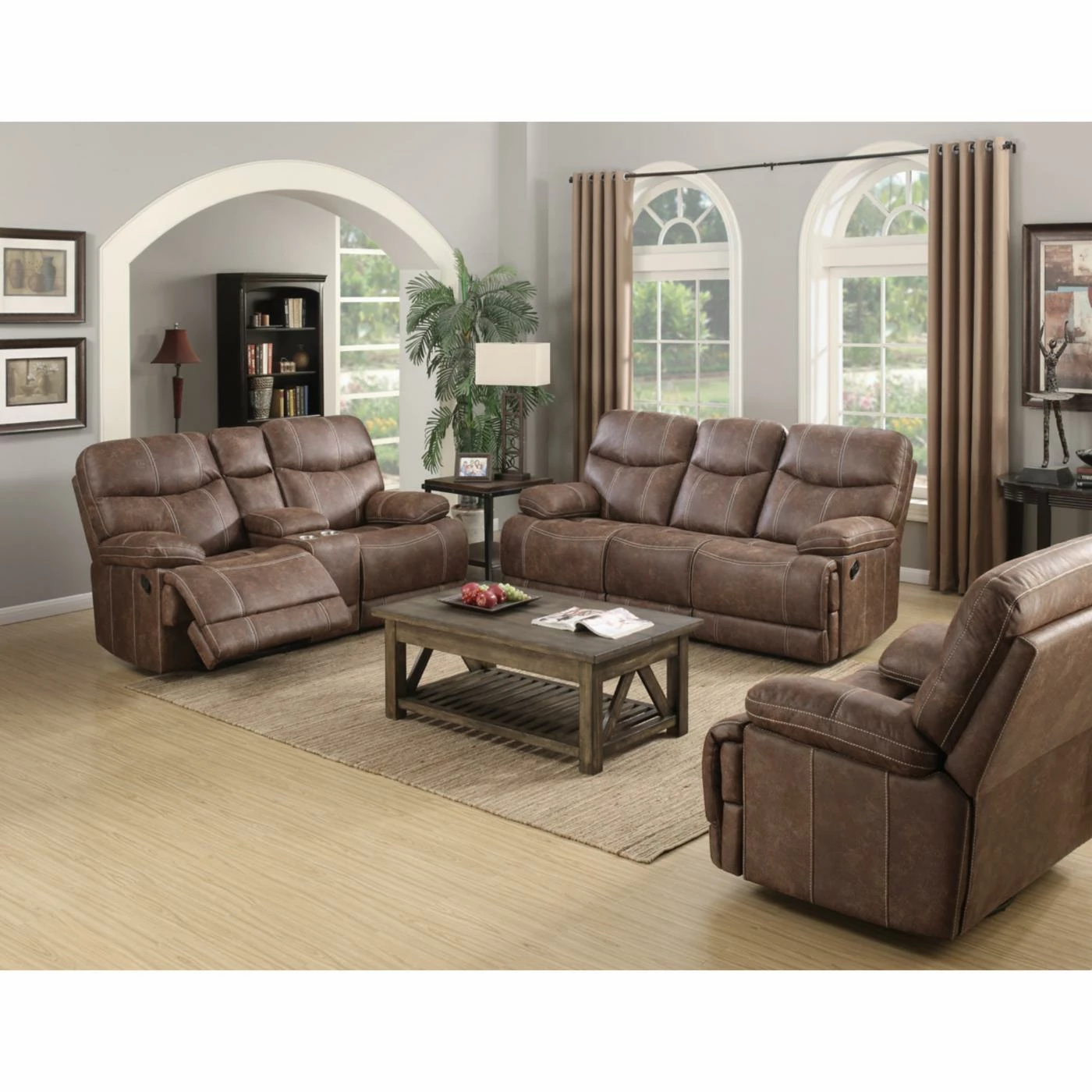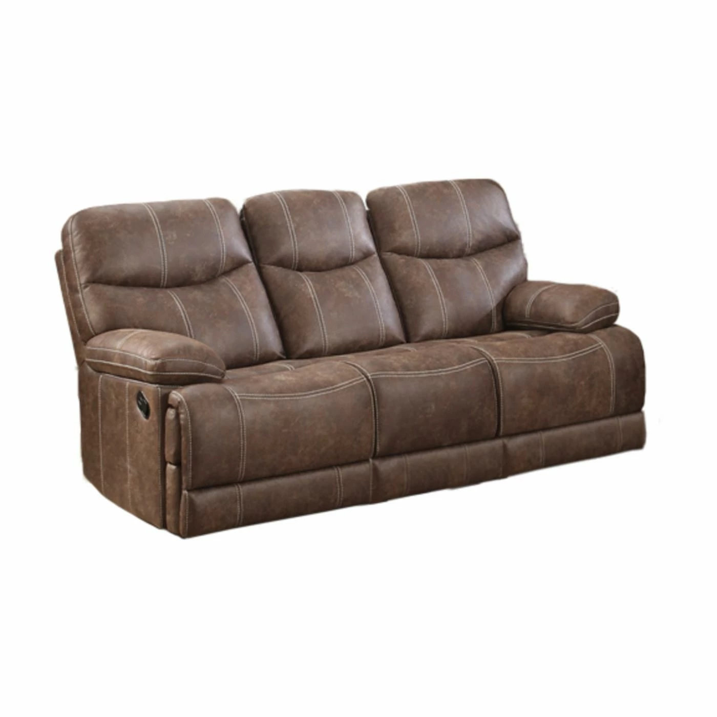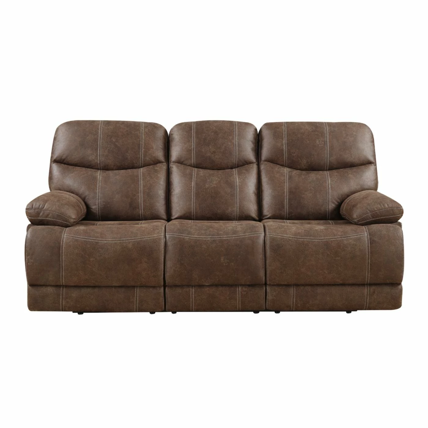 The Wallace & Bay Franklin Faux Leather Reclining Sofa offers a strong look with smooth sanded faux leather fabric and contrast baseball stitching. With unparalleled comfort, an effortless recline, and pillowed arms, it will quickly become your spot for relaxation.
