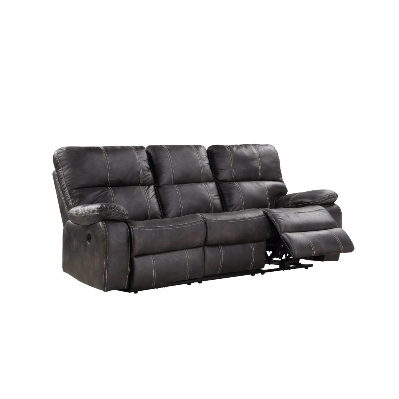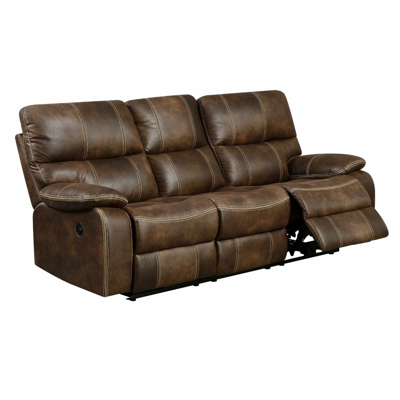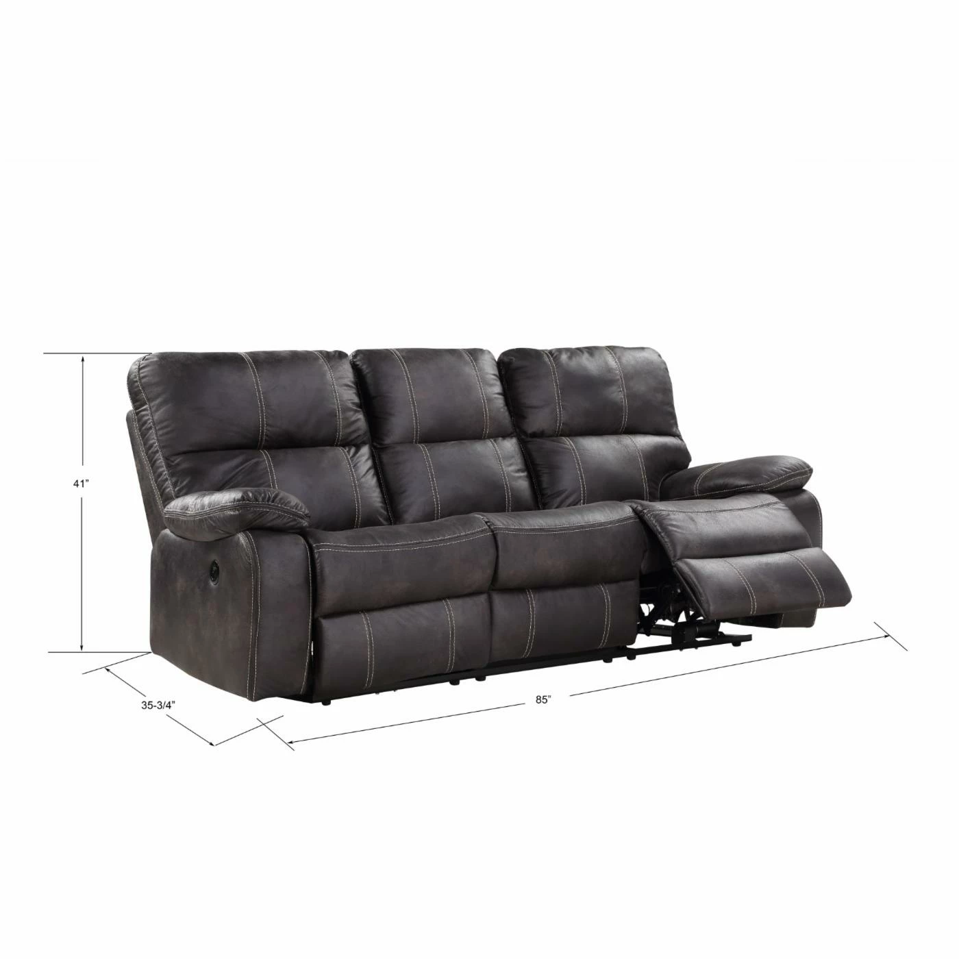 The Wallace & Bay Hooper Faux Leather Power Reclining Sofa brings comfort and class with its cozy leather-look microsuede fabric and contrasting luggage stitching. Relax in style with dual power reclining capabilities and a convenient USB plug-in port.
