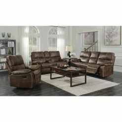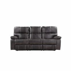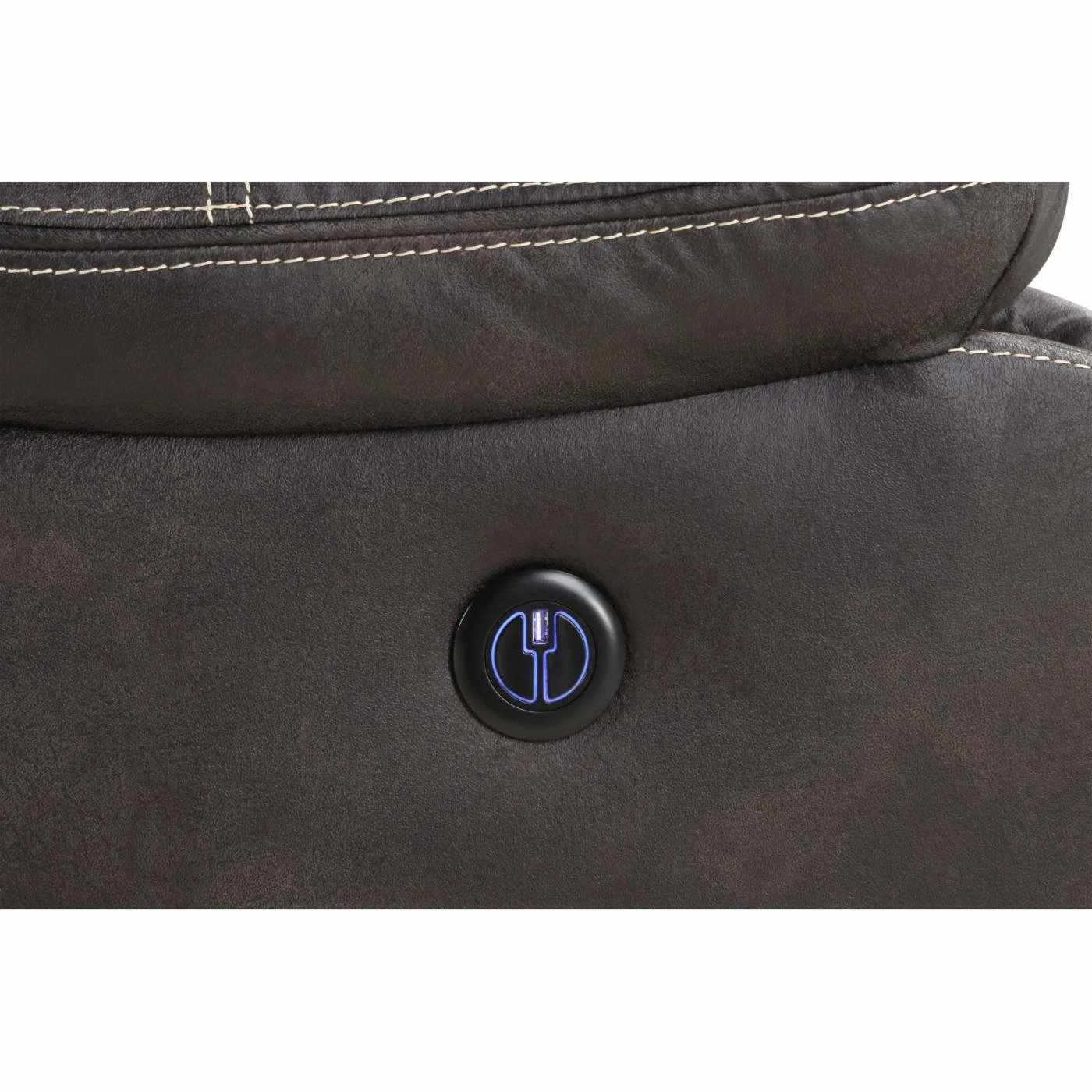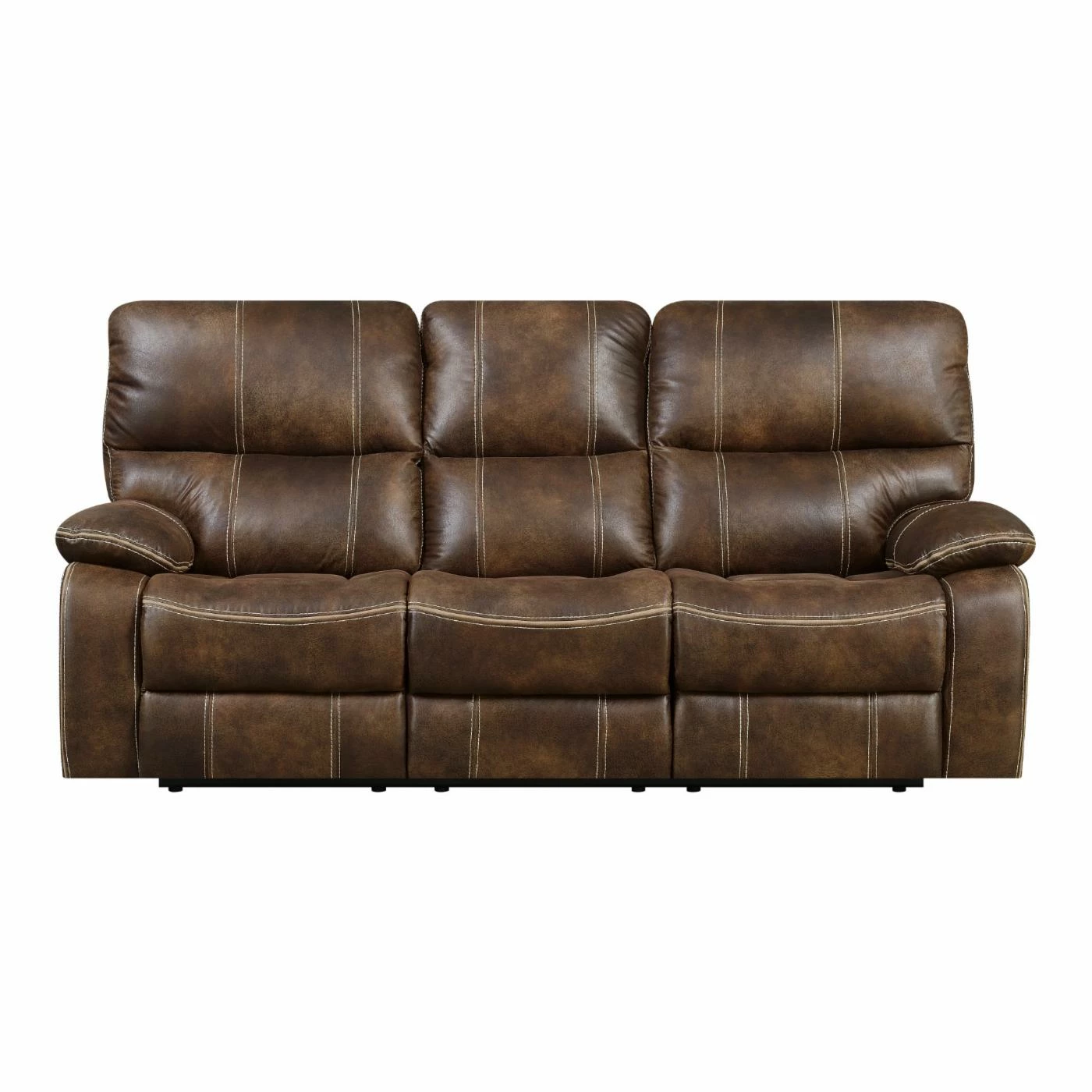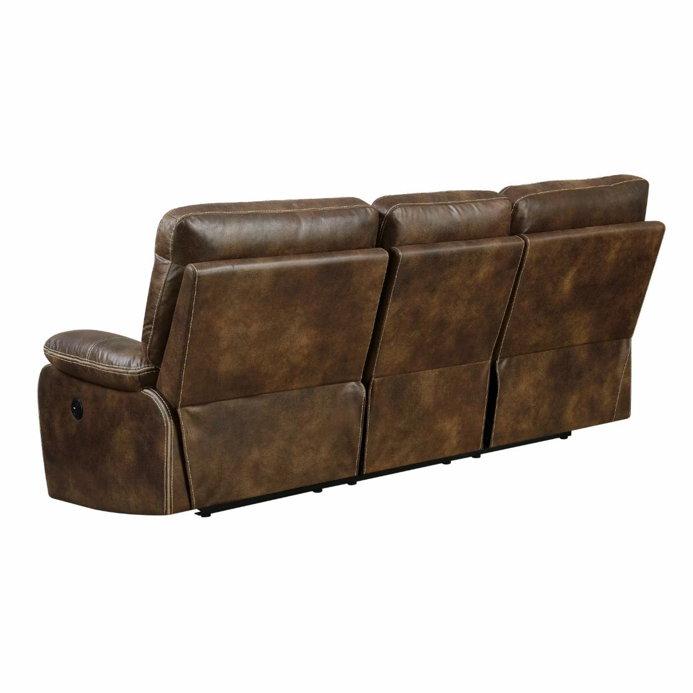 The Wallace & Bay Hooper Faux Leather Power Reclining Sofa brings comfort and class with its cozy leather-look microsuede fabric and contrasting luggage stitching. Relax in style with dual power reclining capabilities and a convenient USB plug-in port.