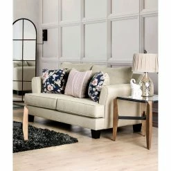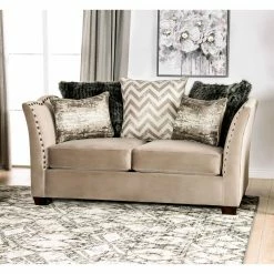 Outlet 🎁 Sofa Sets Baxton Studio Bianca Walnut Wood Light Gray Fabric Tufted Livingroom Sofa Set 🎁